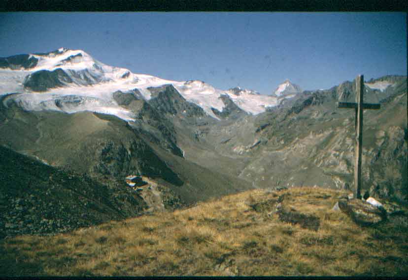 Hochtal. Fast eben laufen wir an den Bergfuß heran, überqueren dabei die alte Staumauer, auf dem die Marteller Hütte steht. In Serpentinen überwinden wir die letzten Höhenmeter zum AVS-Schutzhaus (2610m). Hervorragende Aussicht zum Cevedale und Ortlergebiet. Jacke mitnehmen es bläßt ein kalter Wind von den Gletschern.