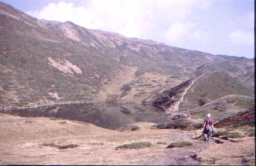 Zuerst folgen wir weiter dem Weg Nr.4, steigen dann aber weglos direkt zum Gipfel auf , 2555m. Da der Gipfel sehr frei steht, hat man eine wunderbare Rundschau, z.B. auf Ortlergruppe, Vinschgau, Ötztaler Berge um die Weißkugel und zu den Grenzbergen zur Schweiz. Weglos erreicht man im Abstieg die Plantapatsch-Hütte, um die sich ein bekanntes Winterskigebiet ausdehnt.
